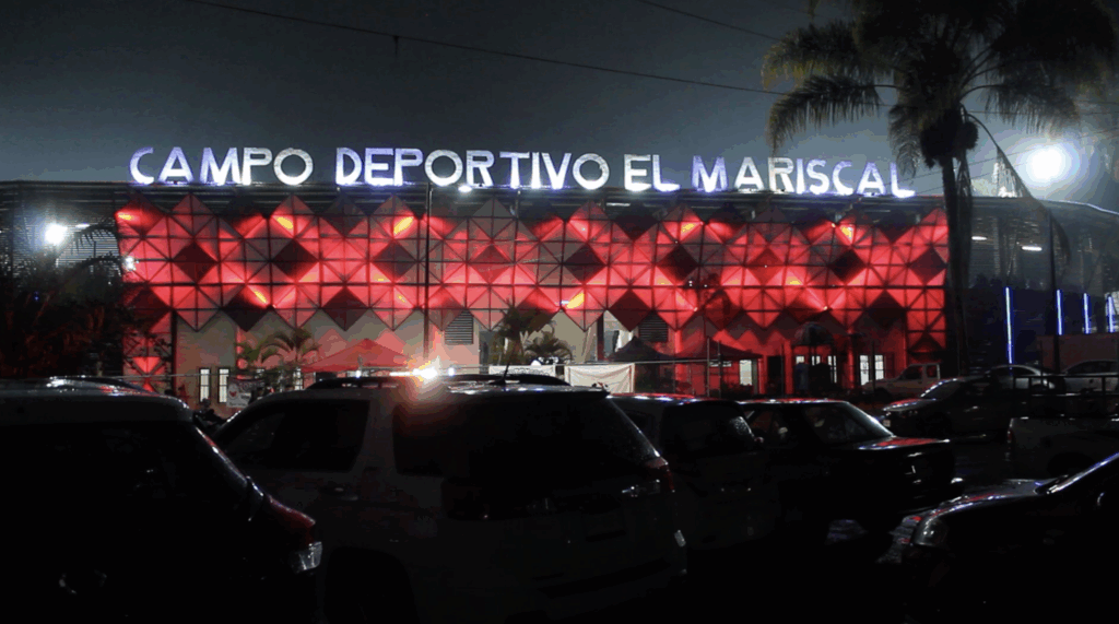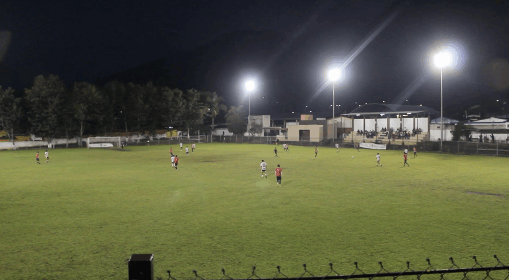 Noche de lluvia, fútbol, ambiente inmejorable y una cita con la historia. Ocho torres de luz fueron puestas en funcionamiento para iluminar el campo El Mariscal, casa del Águila Azteca de Chocamán, que participa en la Liga TDP del futbol mexicano federado.